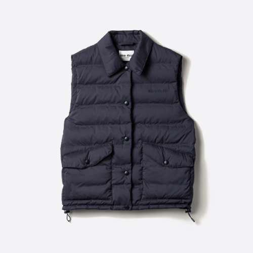 미우미우 로고 퀼팅 라펠 다운 베스트 > ★ Outer