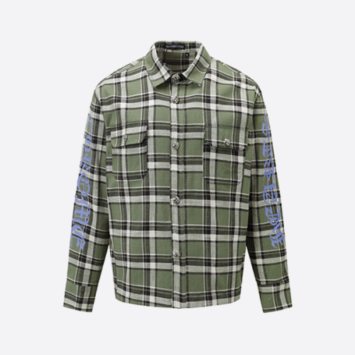 크롬하츠 스트라이프 체크 패치워크 실버 버튼 그린 긴팔 셔츠 > ★ Outer