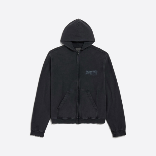 발렌시아가 블러 프린트 워시드 지퍼업 후드 재킷 > ★ Outer