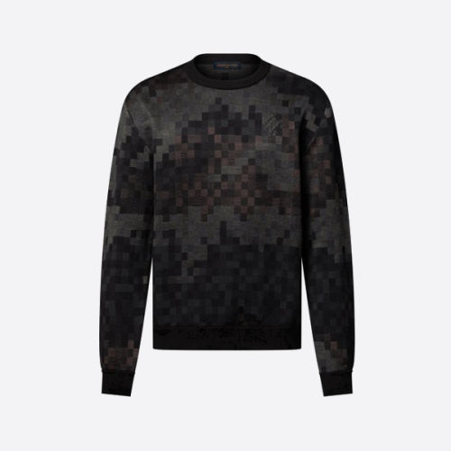 스터드 모자이크 장식이 있는 뒷면의 루이비통 블랙 크루넥 스웨터 > ★ Top
