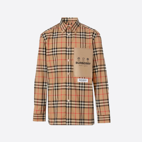 버버리 라벨 패치 체크무늬 긴팔 셔츠 > ★ Outer