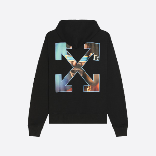 오프화이트 포트레이트 오버레이 애로우 프린트 후드티 > ★ Top