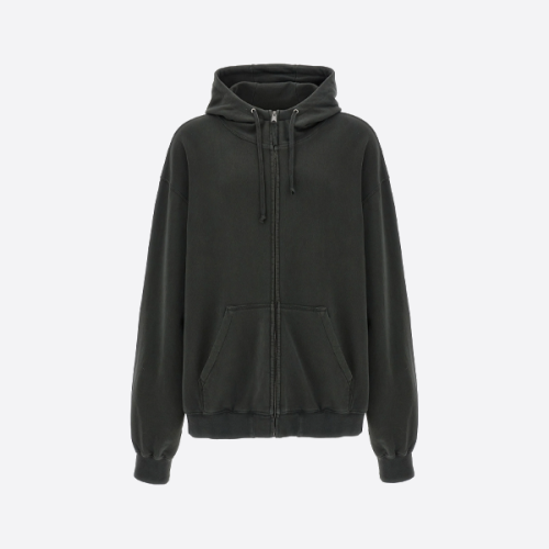 메종 마르지엘라 언피니시드 자수 프린트 후드 스웨트셔츠 재킷, 블랙 > ★ Outer
