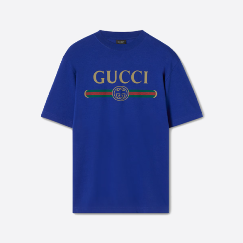 구찌 니트 코튼 티셔츠, 블루 > ★ Top