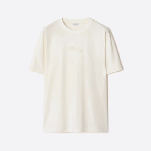 버버리 체크 무늬 엄마와 아이 자수 라운드넥 반팔 티셔츠 (화이트) > ★ Top
